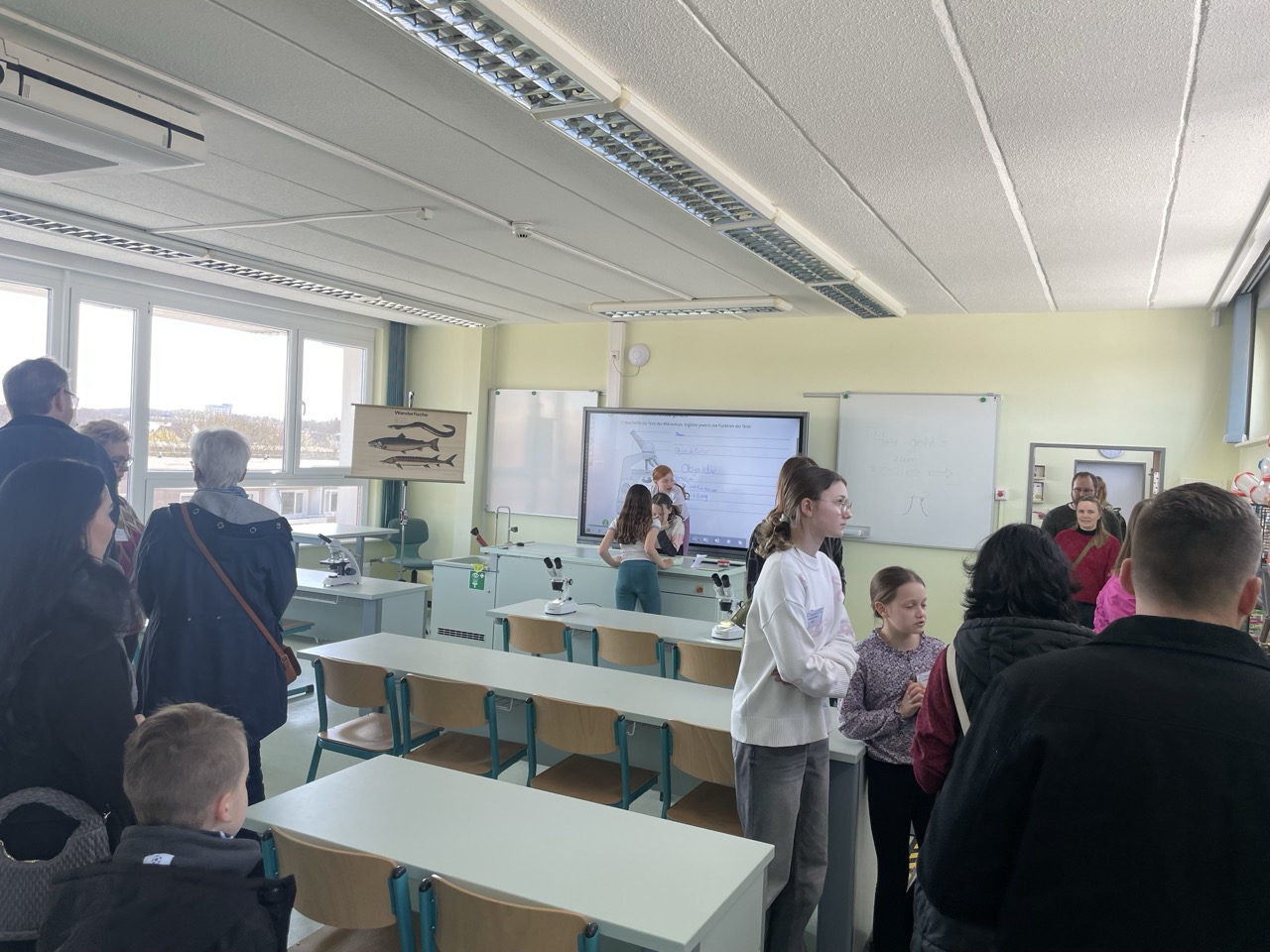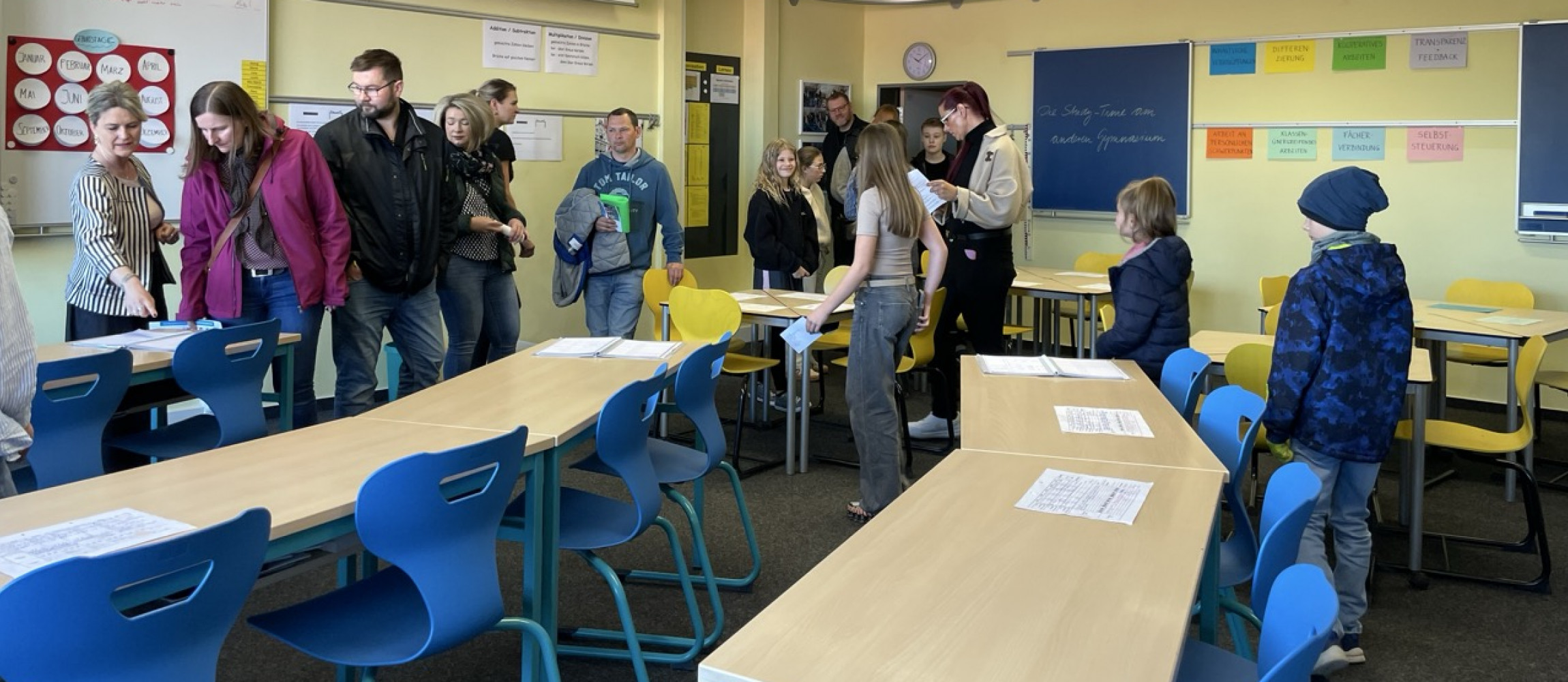 Auch im Biologieraum herrschte reges Treiben: Mit viel Freude und Neugier stellten sich die Kinder einem spannenden Biologie-Quiz. Immer wieder war zu hören, wie begeistert sie von der bunten und modernen Gestaltung unserer Schule waren – ebenso wie von den kreativen Kunst-, Informatik- und Medienprojekten, die unsere Schülerinnen und Schüler hier mit viel Engagement umsetzen.