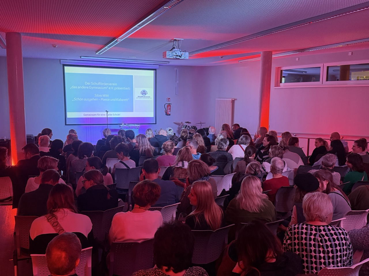 Anfang Dezember lud der Schulförderverein „das andere Gymnasium“ e.V. zu einem besonderen kulturellen Abend ins Auditorium der Schule ein. Unter dem Titel „Schön ausgehen – Poesie und Kabarett“ gastierte der Kabarettist Silvio Witt – und traf damit offensichtlich ins Schwarze: Der Saal war ausverkauft.